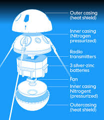 Sputnik satellite had a simple radio transmitter and a silver-zinc battery pack. The satellite broadcasted a series of repeated beeps to show that USSR had succeeded in launching the first man-made satellite. The satellite was filled with nitrogen gas and fitted with a fan to cool if the temps went above 85°F.